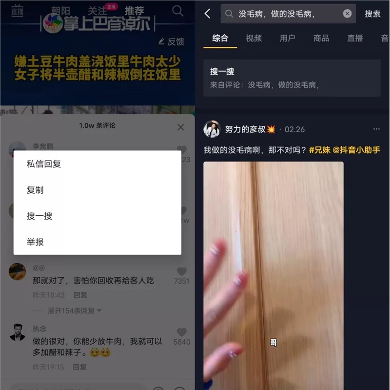 目前,抖音正朝着“搜索电商”发力。此前,抖音测试了名为“搜一搜”的功能,用户可在评论区进行关键句或词语的搜索,搜索结果则可以展示与该句相近的视频内容,不少电商创作者也参与其中,通过在热门视频的评论区中,留有与自己带货视频内容相近的文字,可让其他用户对该文字使用搜一搜功能后,定位到自己的带货视频处,成为一个免费的带货入口。