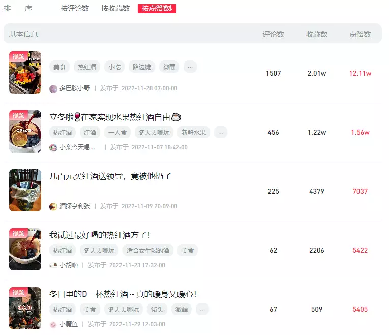 尽管去年已经有大量的热红酒教程步骤内容,今年到目前为止,网友们最多分享的依旧是手把手教学如何做出好喝的热红酒,热度最高的视频在小红书点赞超过12万次。