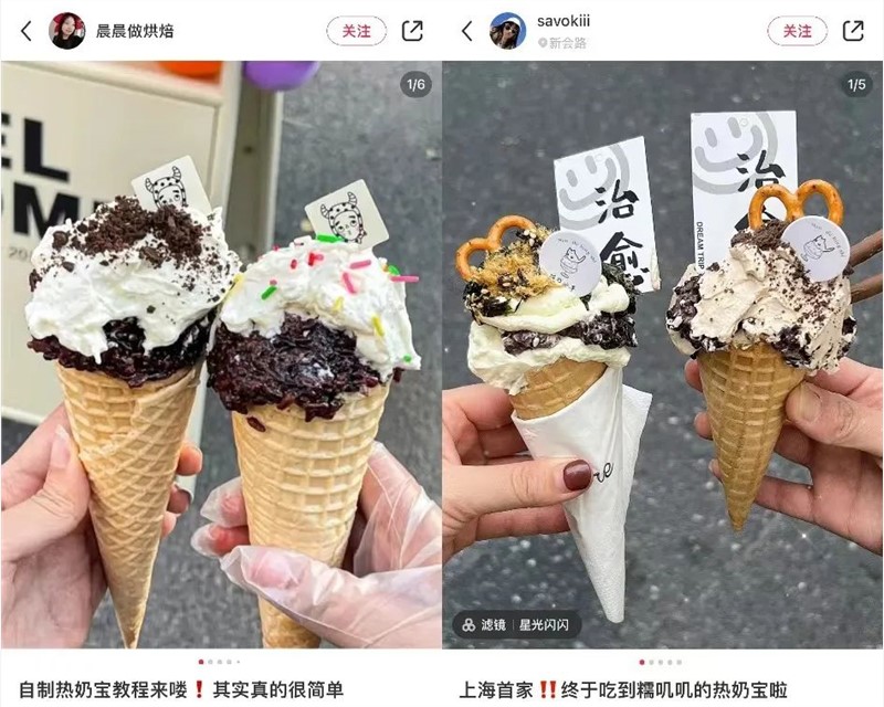 做法简单,成本也不高,基本上每个售价在4-8元之间,加上“热乎乎”“糯叽叽”等特点属性,以及“冬天的冰激凌”这一网红概念,一下就戳中了网友们的兴趣点,从而形成大范围的传播。
