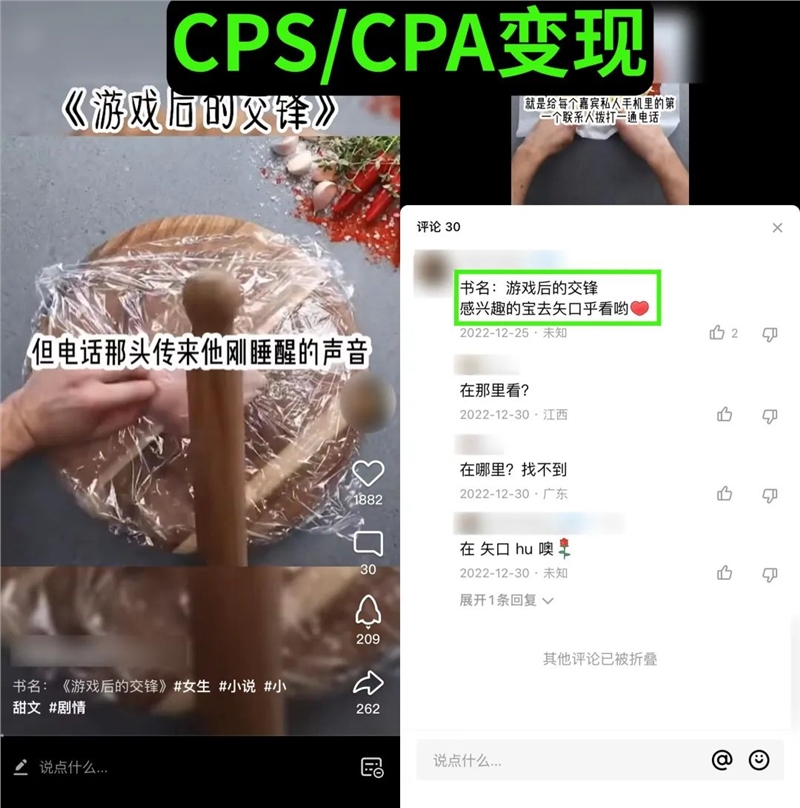 视频挂链接,给视频网站、游戏、社交类APP拉新或卖会员,赚取CPS、CPA。直接到其他短视频平台“深入参考”即可,尽量挑无水印、高清内容。