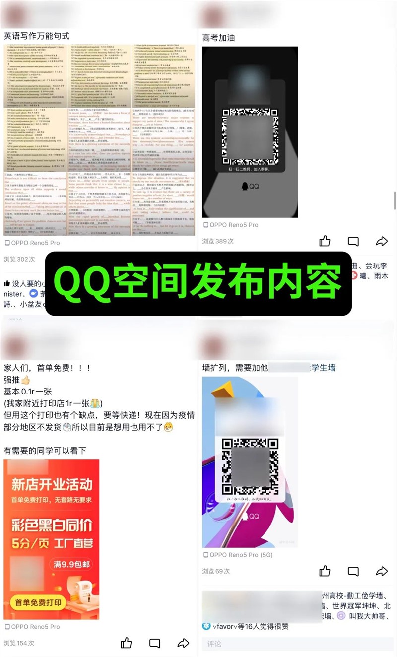 盈利模式有2种,一是在QQ群及QQ空间接广告,例如:网上打印、好友扩列推广等;二是打包卖整套高中资料。