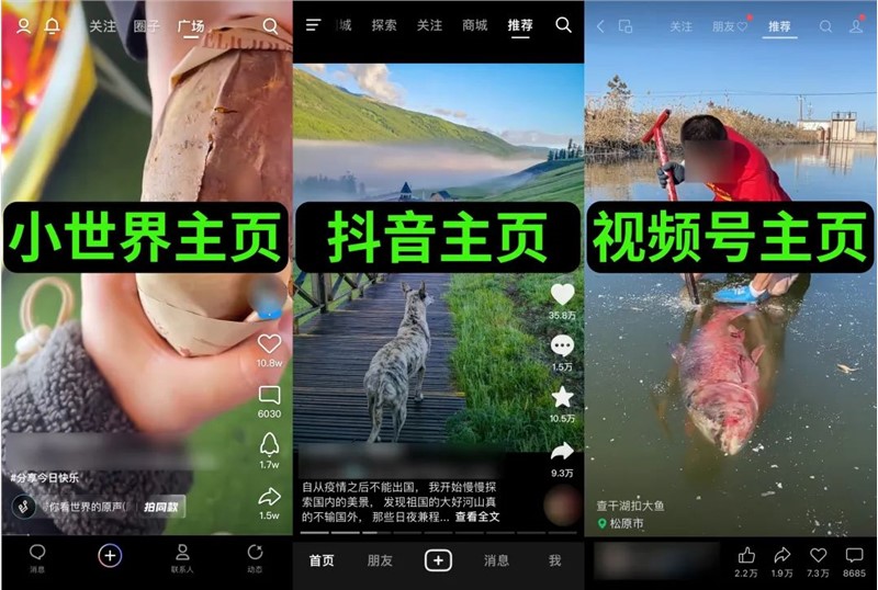 「QQ小世界」与抖音或视频号,不能说完全一致,只能说一模一样,如图。
