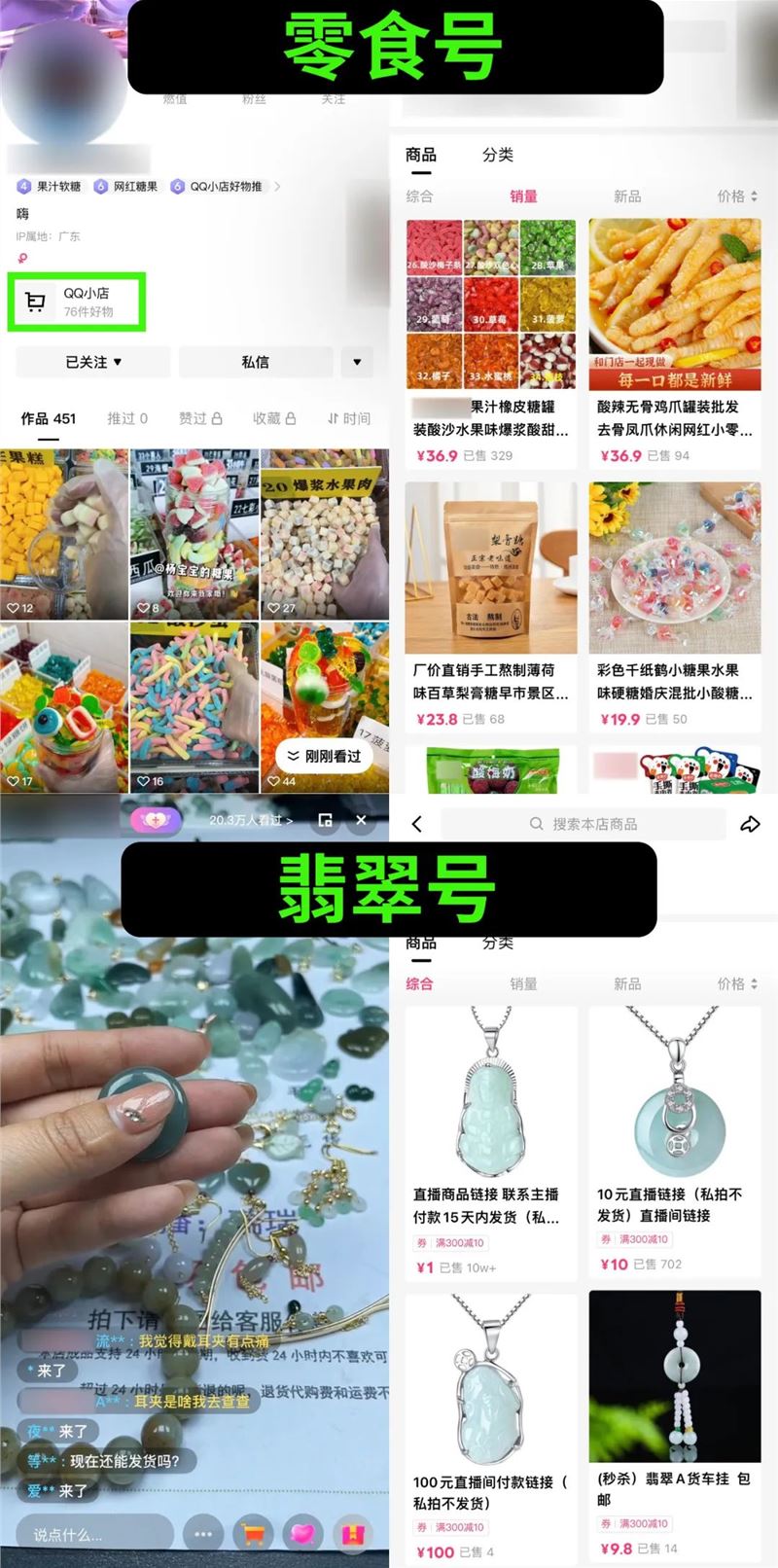即好物号,前期先发布易爆、受众广的猎奇新闻、影视解说、明星动态、情感类视频,粉丝大于1000即可开通橱窗带货权限。QQ客户群多是学生和初阶打工人,可在选品中心挑选热销爆款、低客单高佣的产品,再去“某快某手、某宝某多”平台找此类产品的高赞带货视频,进行二创、混剪,挂“选品中心”链接带货赚佣金。
