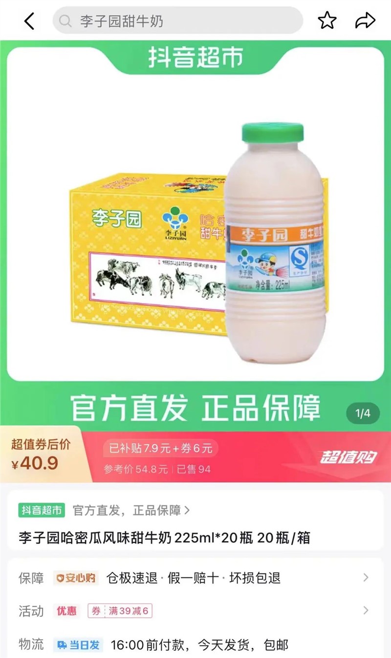 高频低毛利的品类正可以帮助抖音获得更多用户和复购。抖音超市就上线了“安心价”栏目,标明商品售价为“抖音超市30天内最低价”,以低价的品牌商品吸引用户购买。