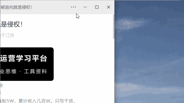 弹窗后的文章界面布局和手机端几乎一模一样,右上角也出现了“···”,功能按钮都集合了进去。