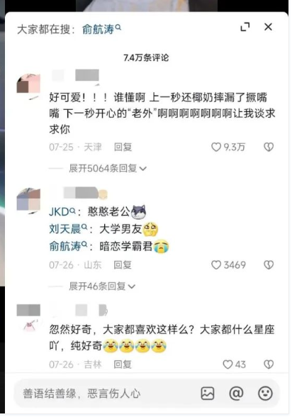 就像男生期待有一个“阿七”这样的女友一样,女生也希望有一个“刘天晨”这样的男友。在“刘天晨”的评论区,有网友留言:“跟他散步,他肯定小嘴叭叭不停,受不了了。”