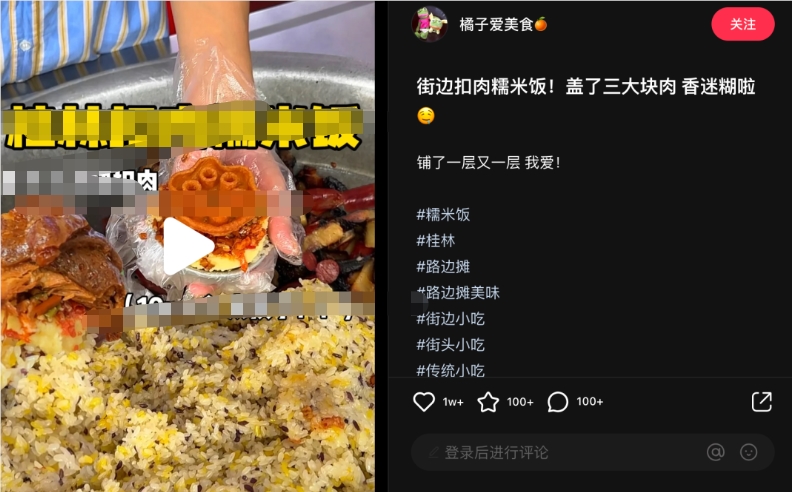 再看一篇新的笔记,桂林扣肉糯米饭,首图中提到了三大块扣肉,又提到了10块钱一份,按照当下的物价来算,确实性价比很高,特色,才是吸引人的前提,当然,便宜也是特色,看看拼多多就知道了。