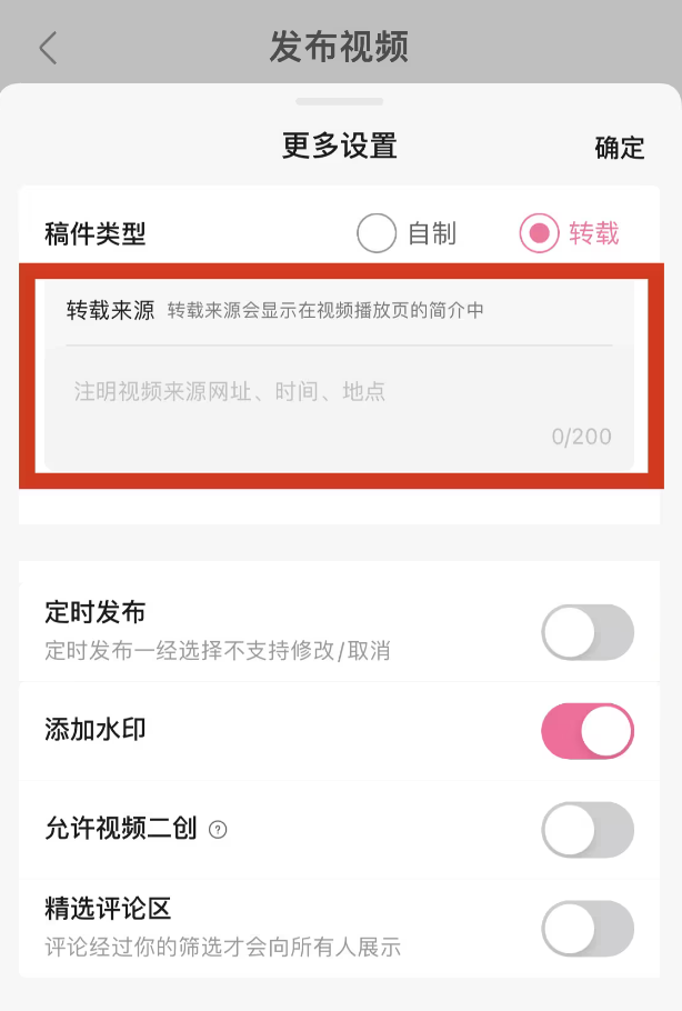 如果发布的视频为转载视频,则需要在投稿页面选择转载,并添加转载来源;如果转载视频侵犯了原作者的合法权益,或是对社区造成了负面影响,则会依据社区规则对发布者进行处罚。