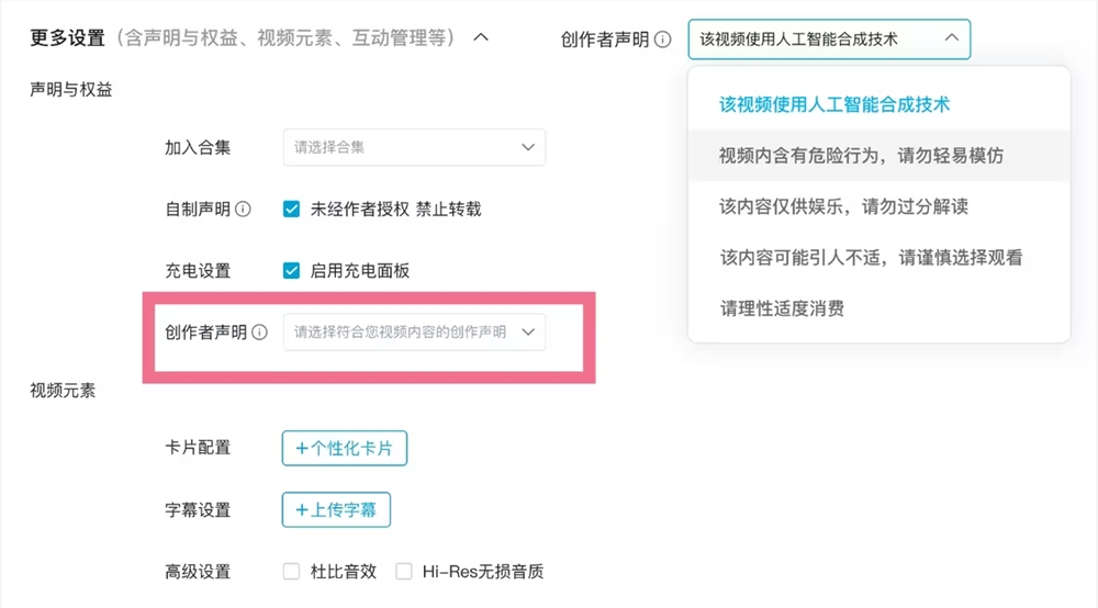 文章来源于互联网:B站将上线“创作者声明”功能 发布AI生成内容需添加声明